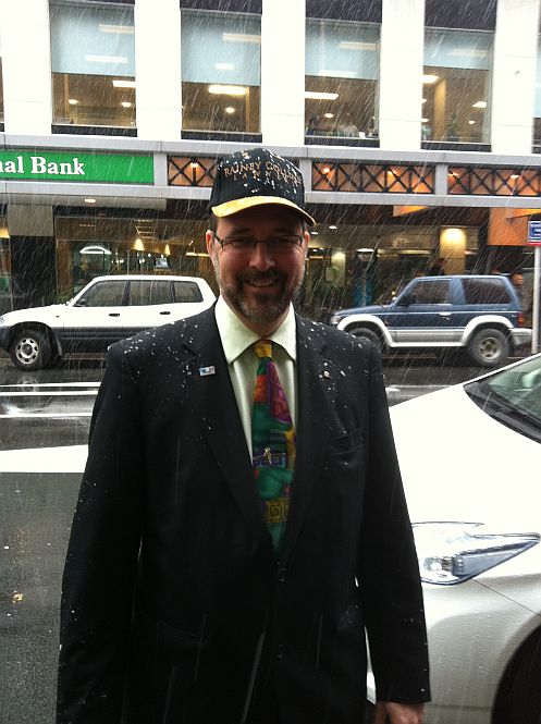 In Wellington during the snow shower (15 August 2011), modelled by Alan Knowsley!